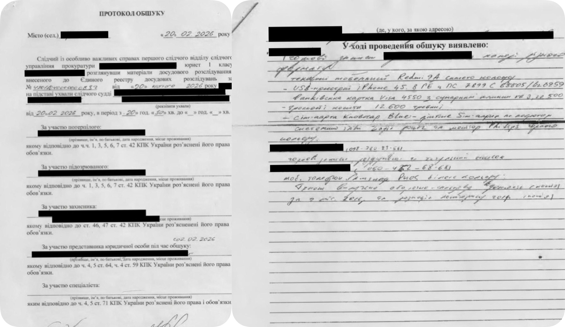 Окремо в мережі з’явилися матеріали, які подають як файли протоколу обшуку, де нібито фігурує мобільний телефон, на якому відтворюється відповідний діалог.